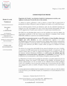 Lire la suitePAPETERIES DE CONDAT : une décision lourde de conséquences sociales, une vigilance pour l’avenir du site et des salariés